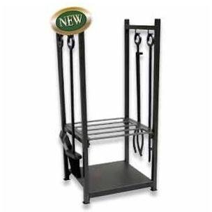 Uniflame Black Wrought Iron Log Rack with Tools Feature